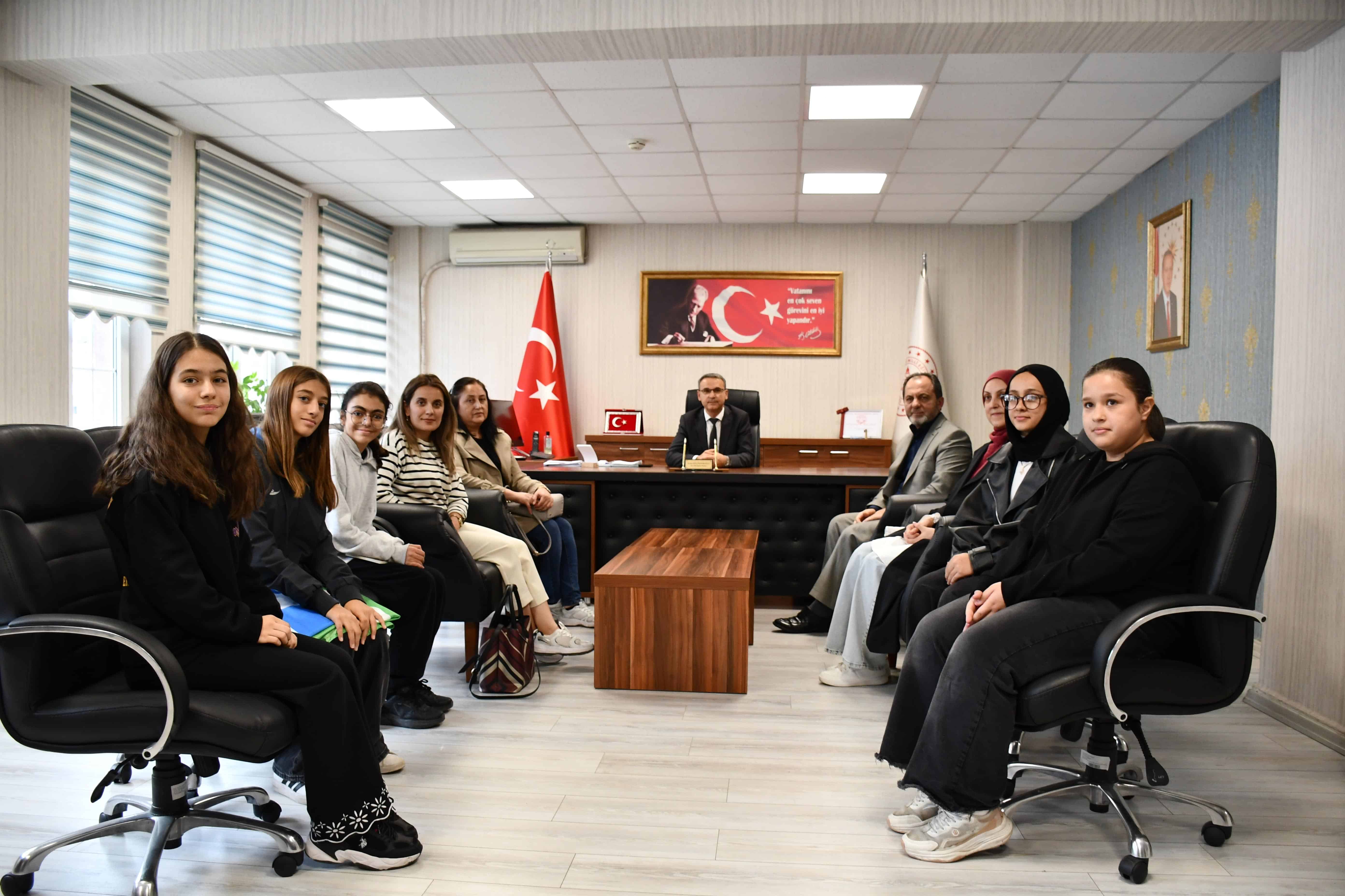 Bu başarı sonrasında Okul Müdürümüz Mustafa Türkoğlu, koordinatör öğretmenlerimiz ve öğrencilerimiz İlçe Milli Eğitim Müdürümüz Şevket Küçükzoroğlu'nu makamında ziyaret ettiler. İlçe Milli Eğitim Müdürümüz de projede emeği geçen öğrenci, öğretmen ve idarecilerimizi tebrik ederek başarılarının devamını diledi.