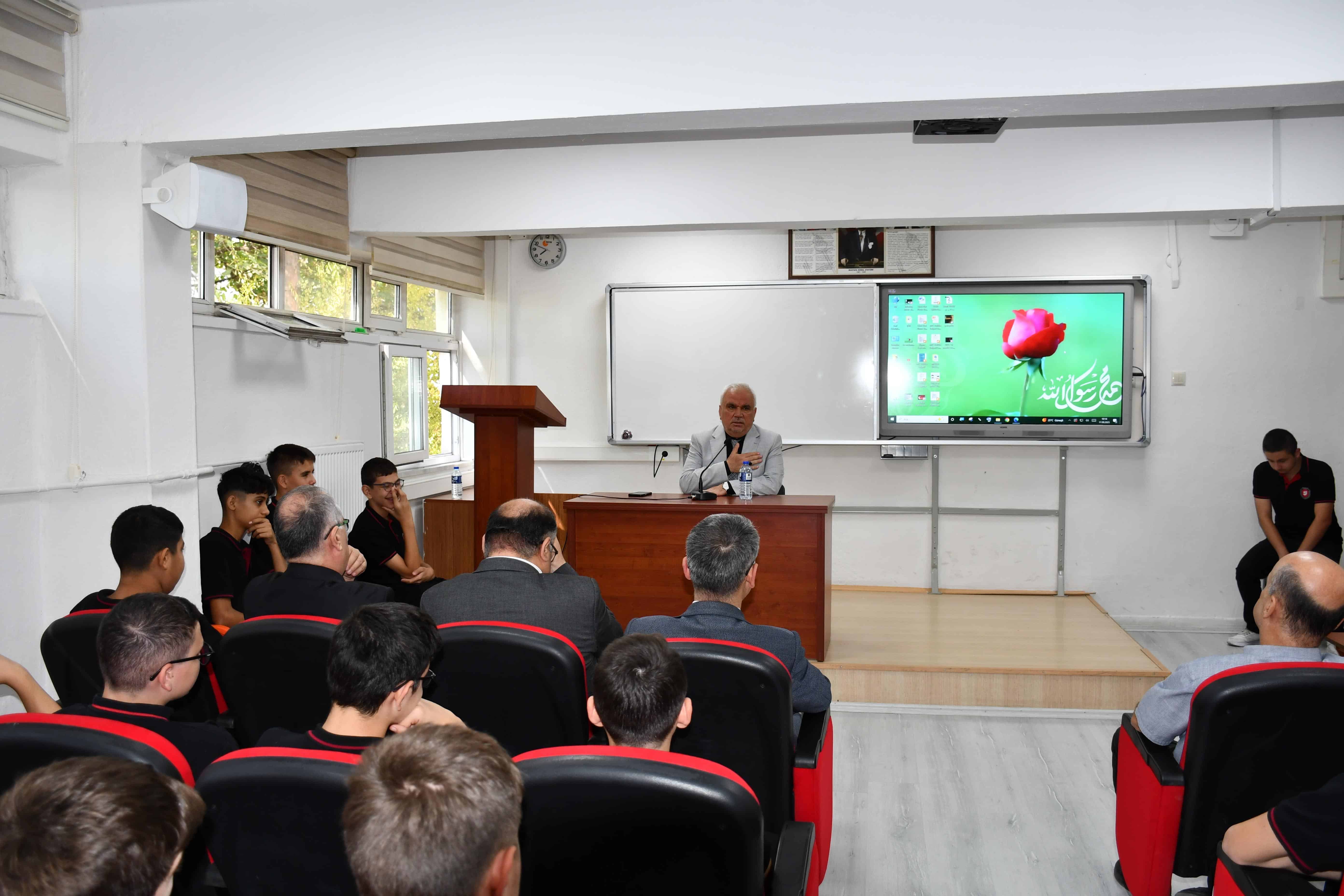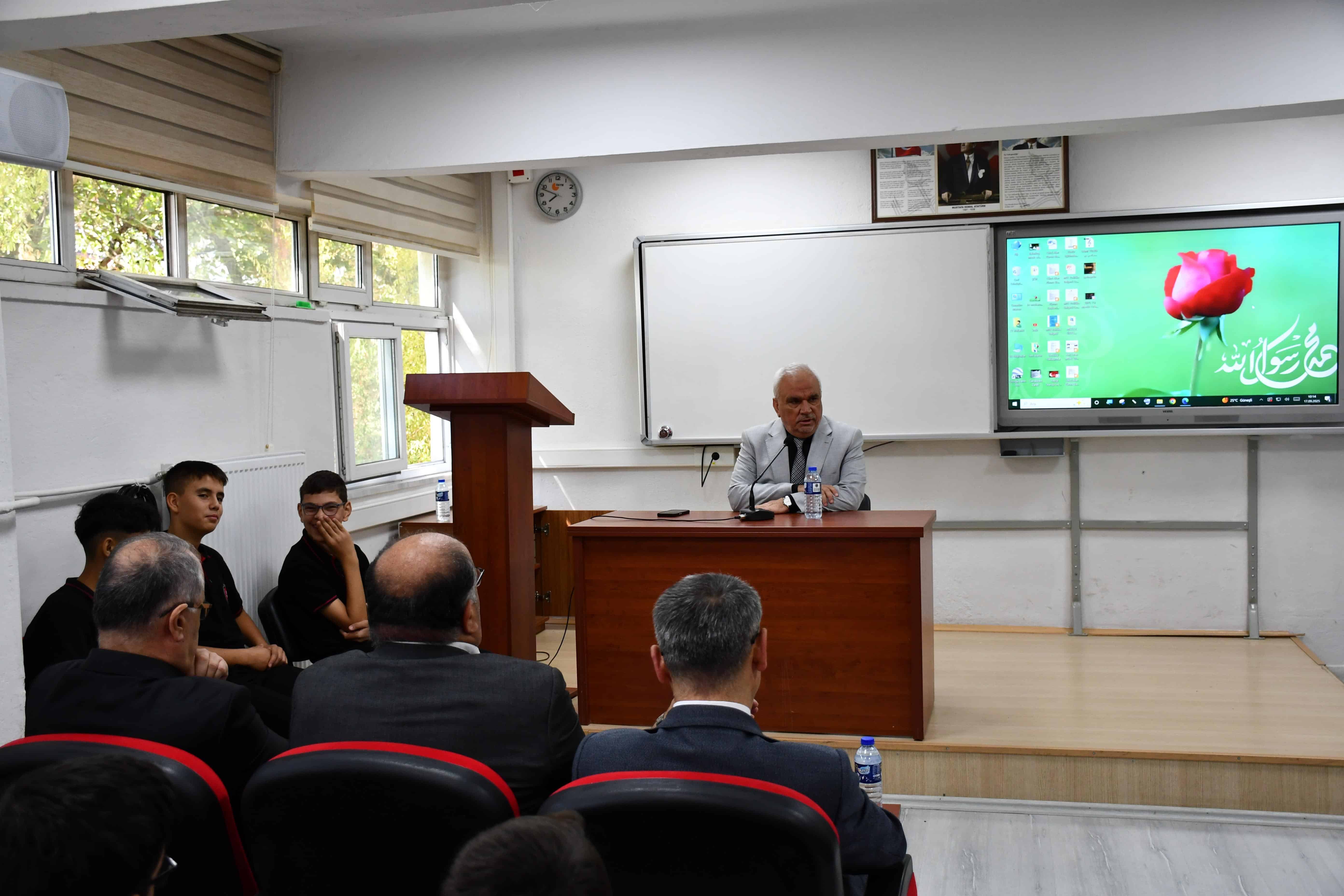 Programın devamında öğrencilerimizle söyleşi yapan İl Müftüsü Ali Erhun, Peygamber Efendimiz'in hayatından örnekler aktararak Mevlid-i Nebi Haftası'nın anlam ve önemini anlattı. Öğrencilerimizle sohbet ederek onların sorularını yanıtladı.